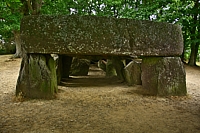 Dolmen La Roché aux Fées Brignogan Roché aux Fées Ouessant západní pobřeží, maják Phare du Créach. Ouessant západní pobřeží, maják Nividic.